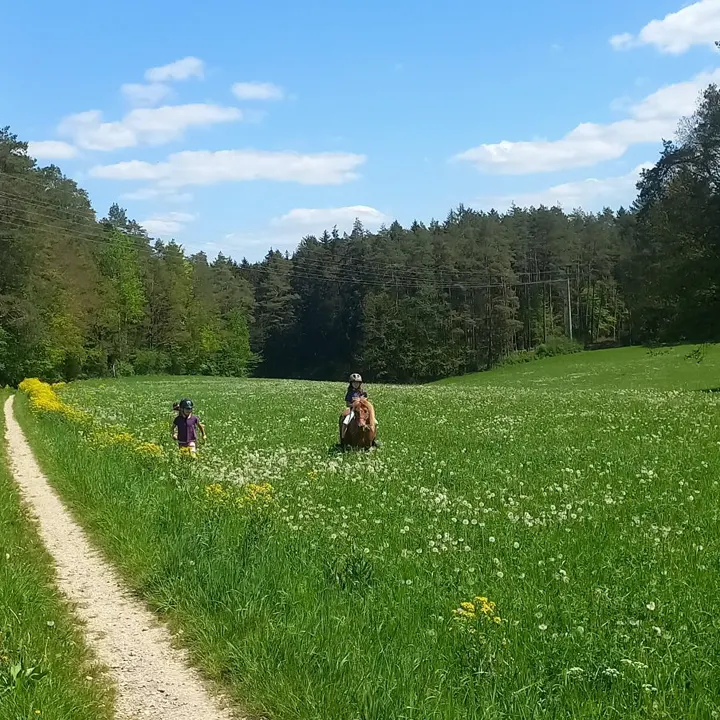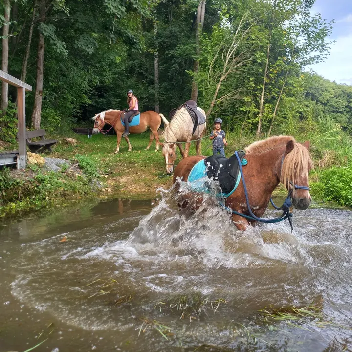 Durch verschiedene Untergründe (Schotter, größere Steine, Baumstämme, gewachsener Boden) wird die Bewegung und der Hufmechanismus deines Pferdes optimal angeregt.