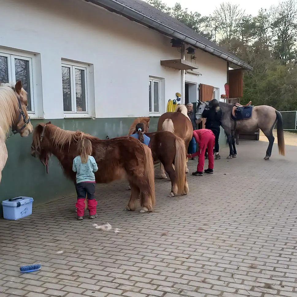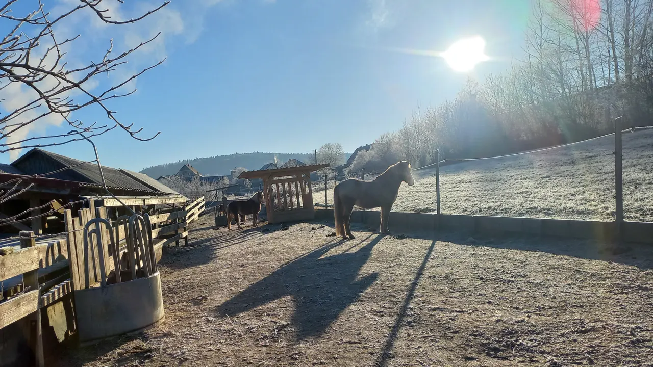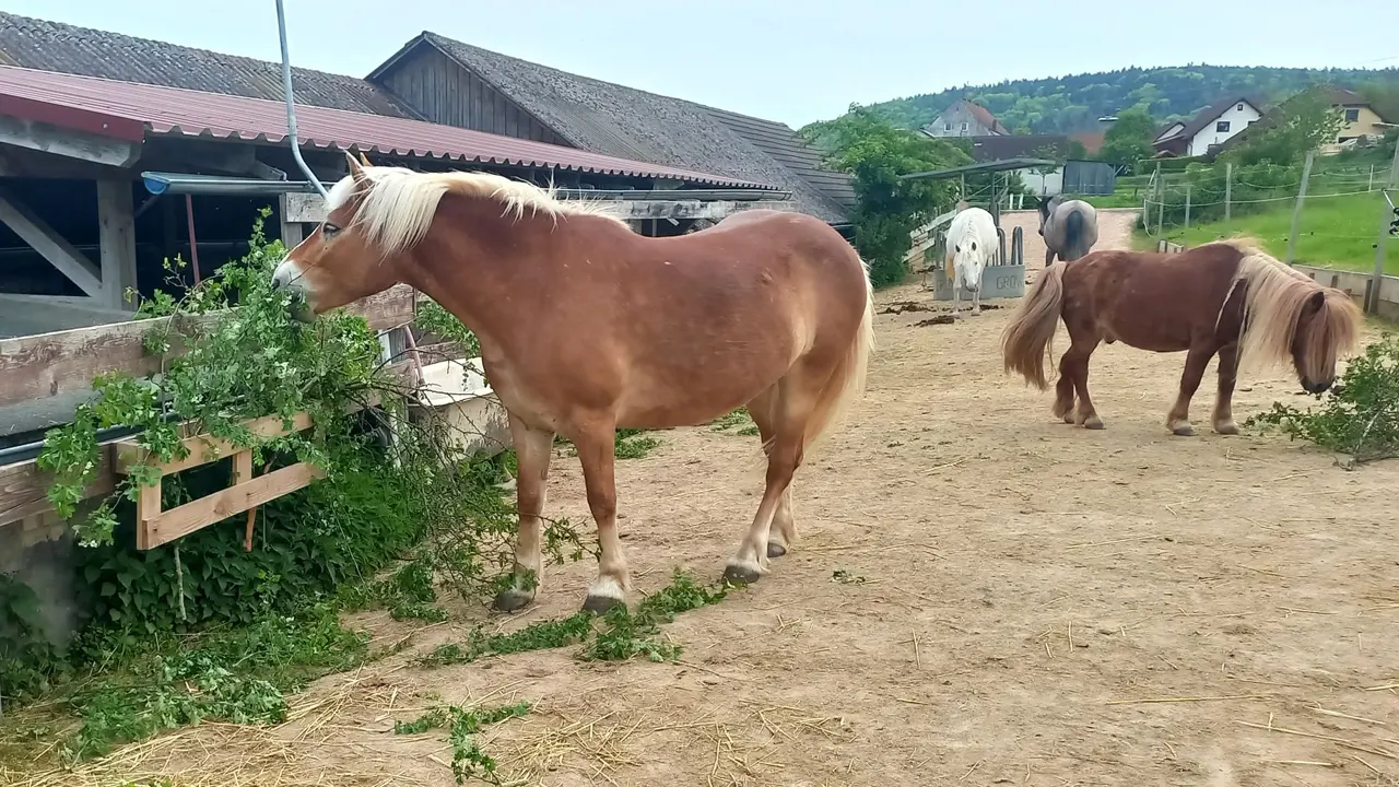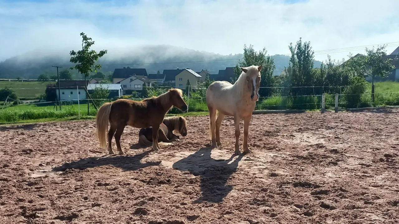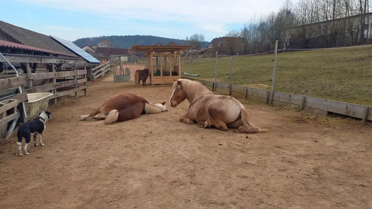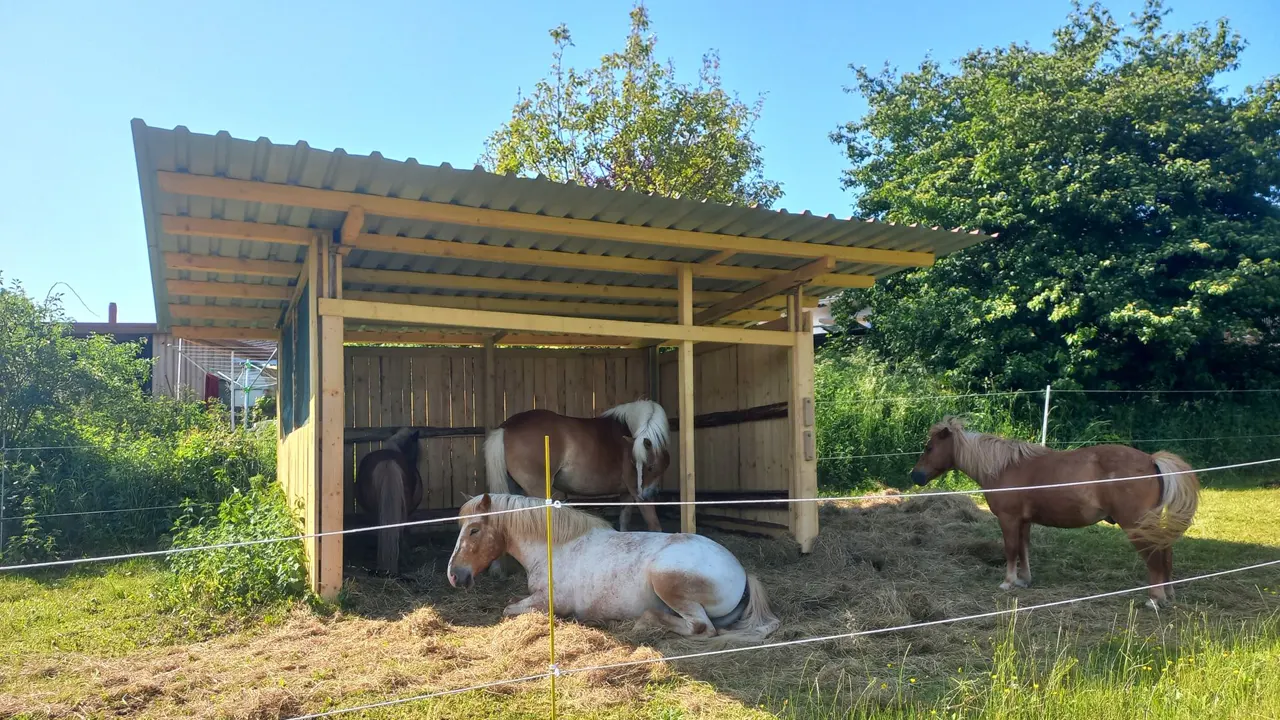 Unser Paddock-Trail bietet ganzjährig Platz für unbeschlagene Klein- und Großpferde von ca. 90 bis 160 cm. Hier kann dein Pferd frei laufen, Freundschaften knüpfen, spielen und ganz Pferd sein – in einer harmonischen, gemischten Herde.