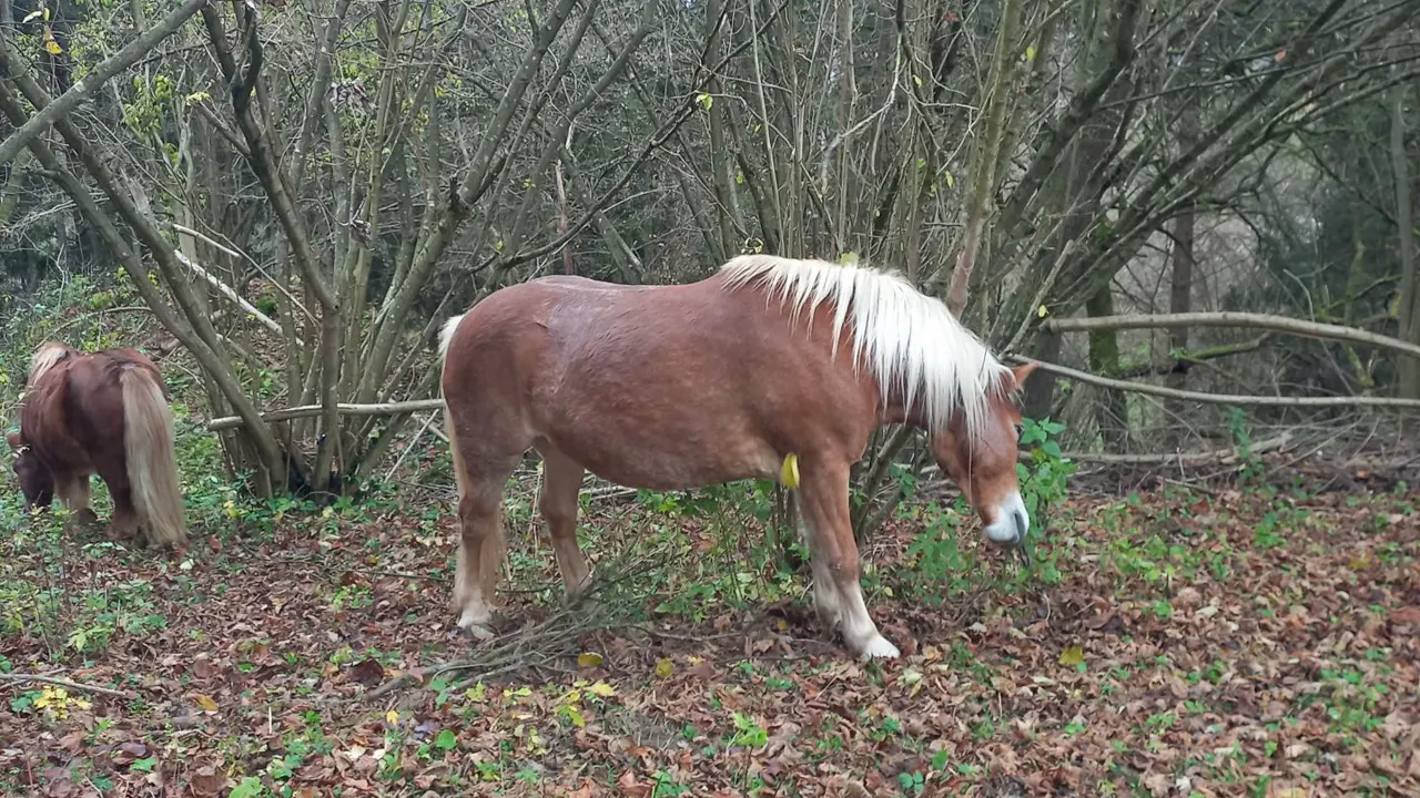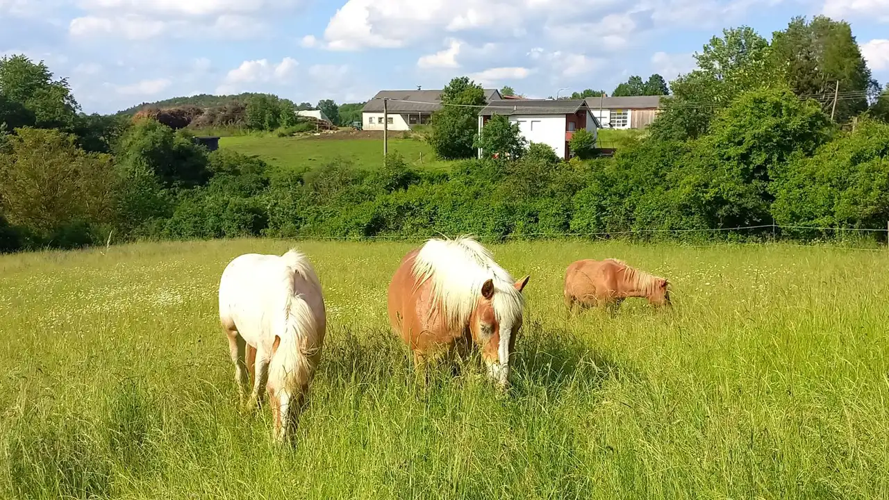 Unterschiedliche Bereiche wie Futterraufen, Knabberbüsche, Totholzzäune, Lecksteine, ausgezäunte Blühwiesen und Liegeplätze bieten auf dem Paddock-Trail viel Abwechslung für dein Pferd und die Artenvielfalt.